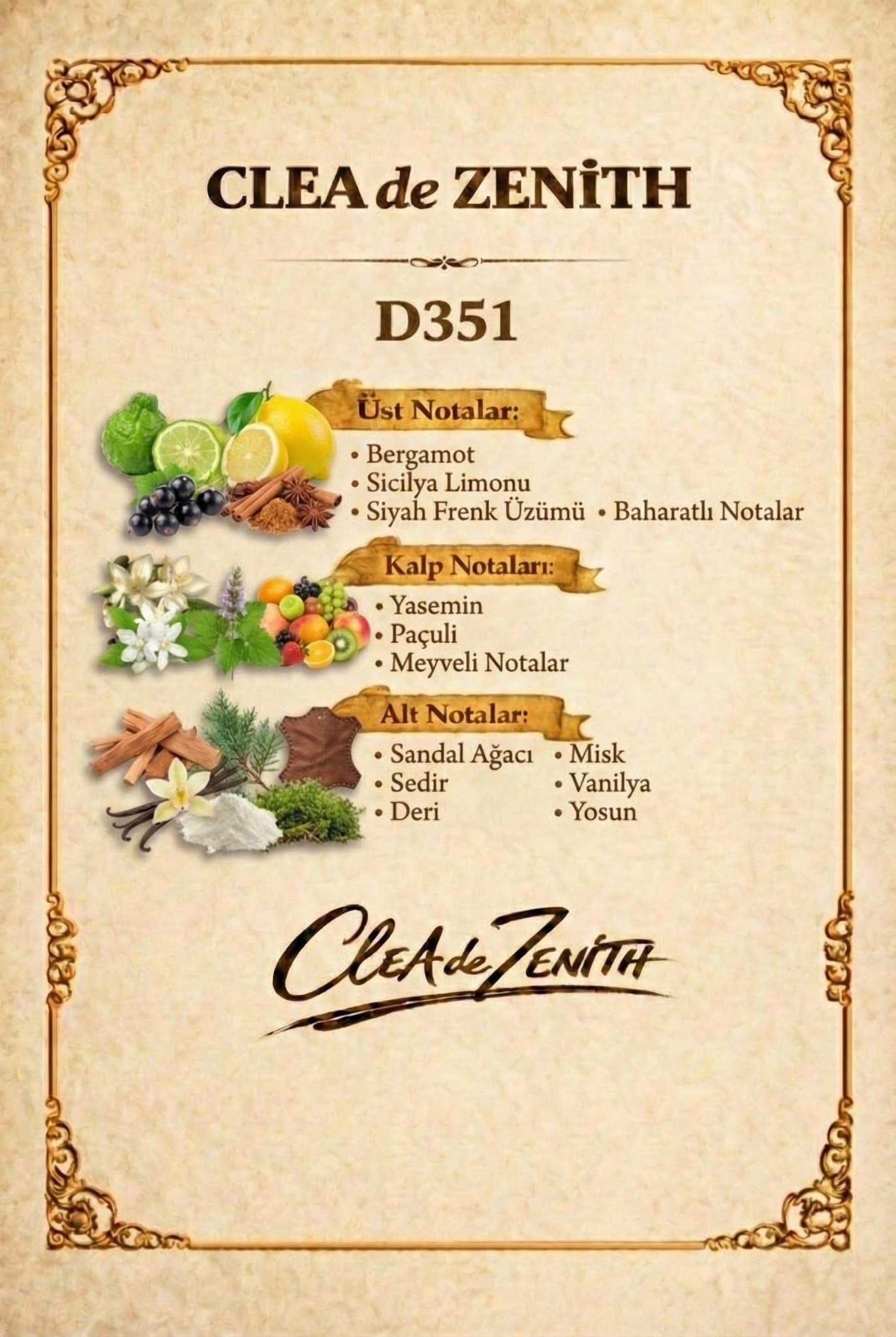 Alt notalar : Sandal ağacı, kehribar ve misk.